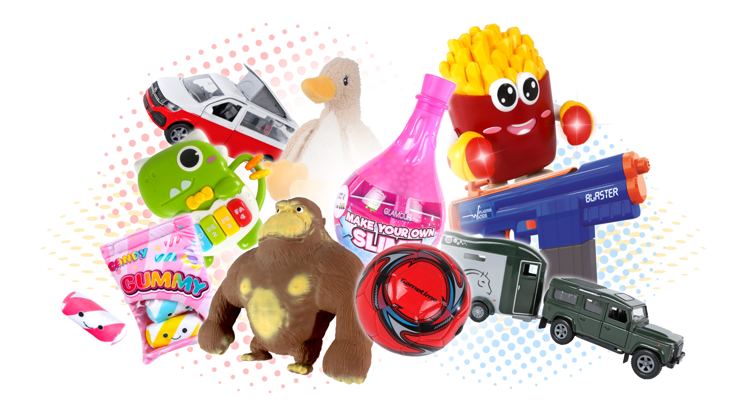Wij willen kinderen blij maken, dit is ons uitgangspunt bij de ontwikkeling van speelgoed, met aandacht voor ieder product-detail. U vindt bij ons een onderscheidend speelgoed assortiment waarmee ook u zich kunt onderscheiden. Het speelgoed, dat wij ontwikkelen en produceren, voldoet aan alle veiligheidsvoorschriften. De artikelen zijn verpakt in een aansprekende en commerciële verpakking.